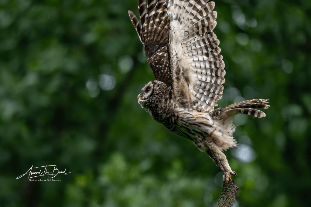 Each month I will feature a single photo or set of photos and include the story behind the story. This month I chose bird that I have not been fortunate enough to photograph often. This month provided that opportunity. Over three days, I found this barred owl. The first two days, he was partially hidden with a bad background and didn’t stay around long enough to properly frame him the way I’d like. I still took a few record shots, knowing I probably would never post or display them